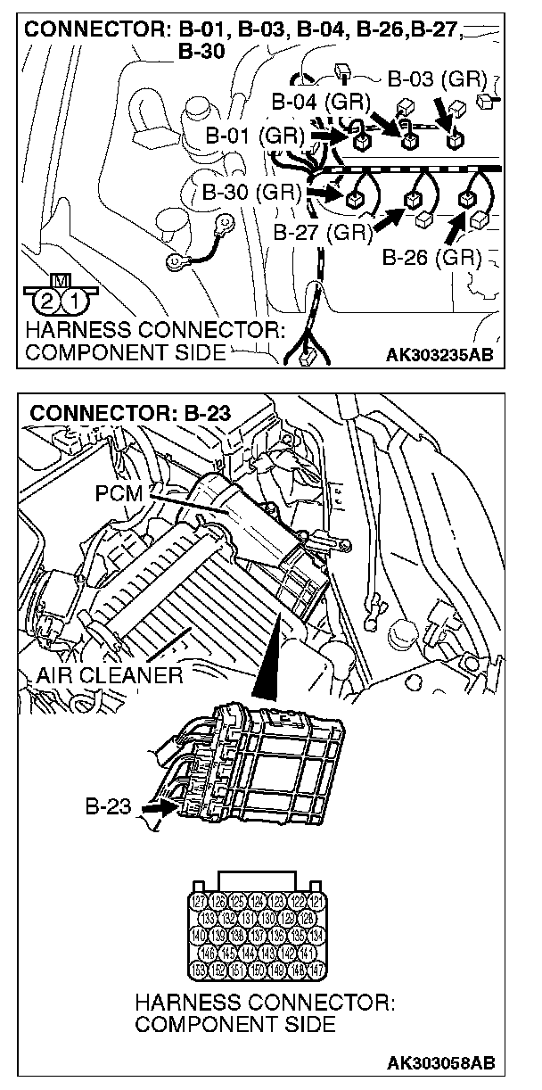 STEP 13. Check the harness connector B-23 at the PCM for damage.
