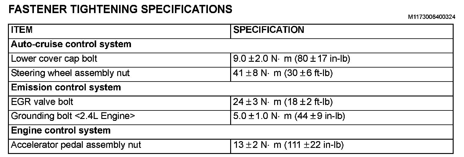Fastener Tightening Specifications: