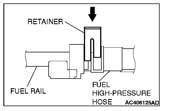 2. Install the fuel high-pressure hose to the fuel rail securely and push the lock of fuel high-pressure hose downward and lock thoroughly.