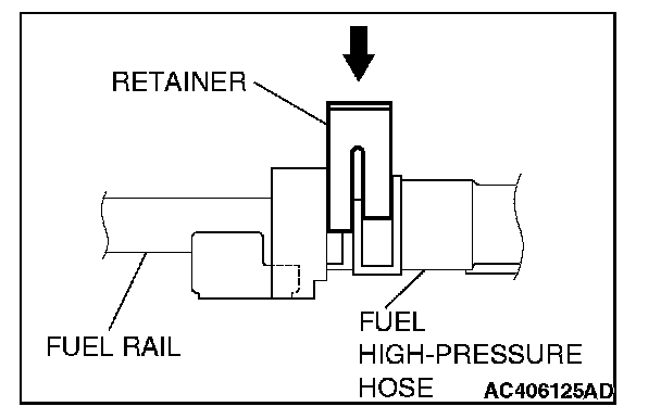 2. Install the fuel high-pressure hose to the fuel rail securely and push the lock of fuel high-pressure hose downward and lock thoroughly.