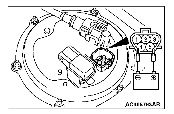 5. When the fuel pump drive connector is attached directly to the battery check if the sound of the fuel pump operation can be heard. If no operating sound is heard replace the fuel pump module.