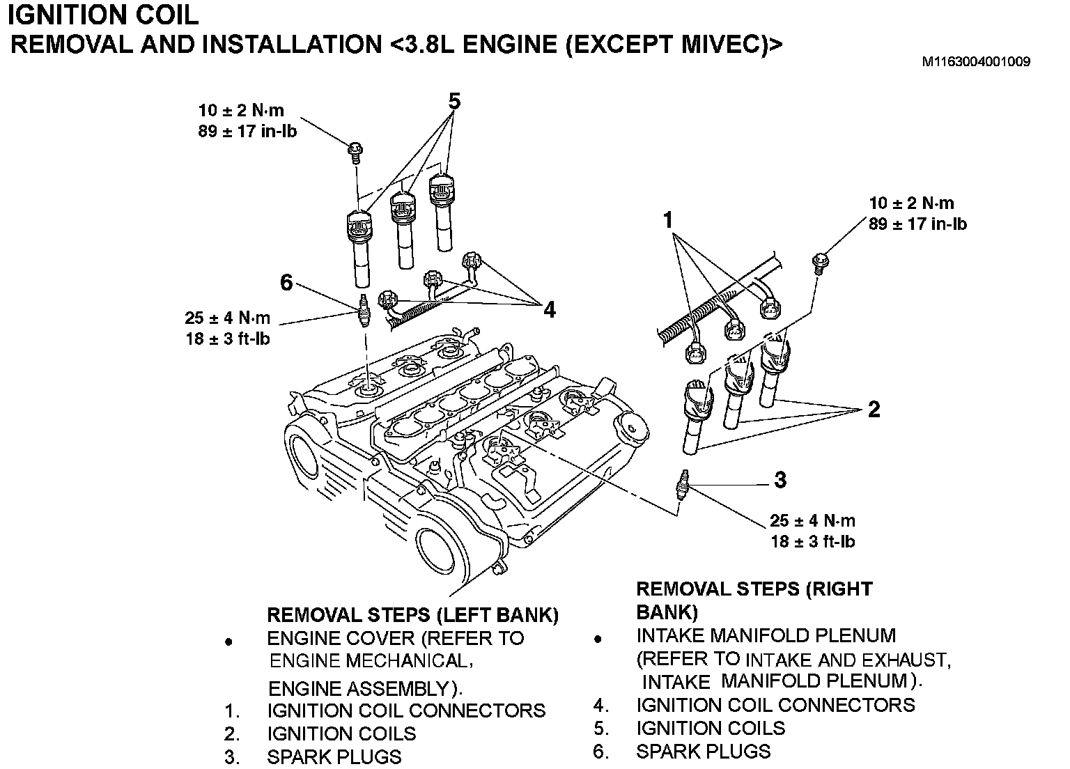 REMOVAL AND INSTALLATION <3.8L ENGINE (EXCEPT MIVEC)>