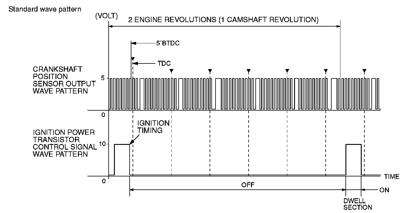Point: The power transistor control signal (ignition timing) is advanced when the engine speed is increased.