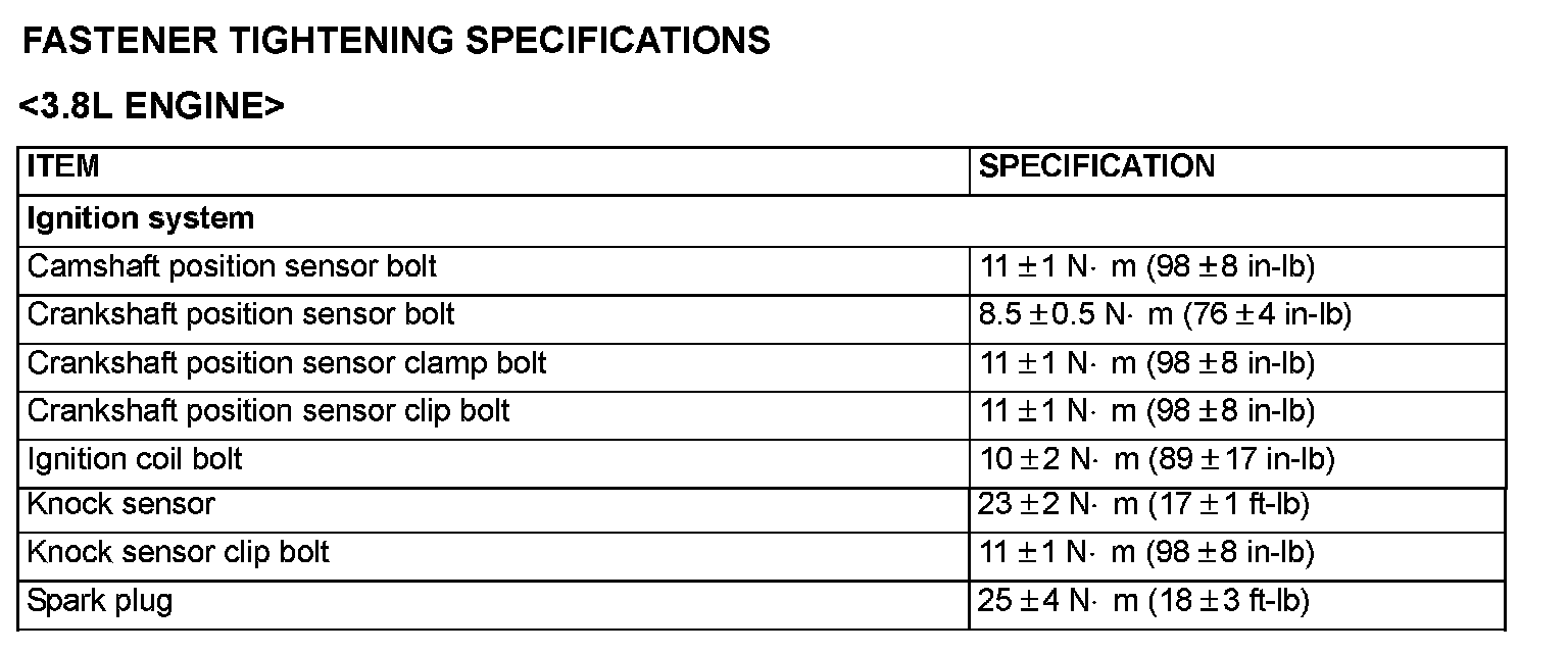 Fastener Tightening Specifications - Ignition System: