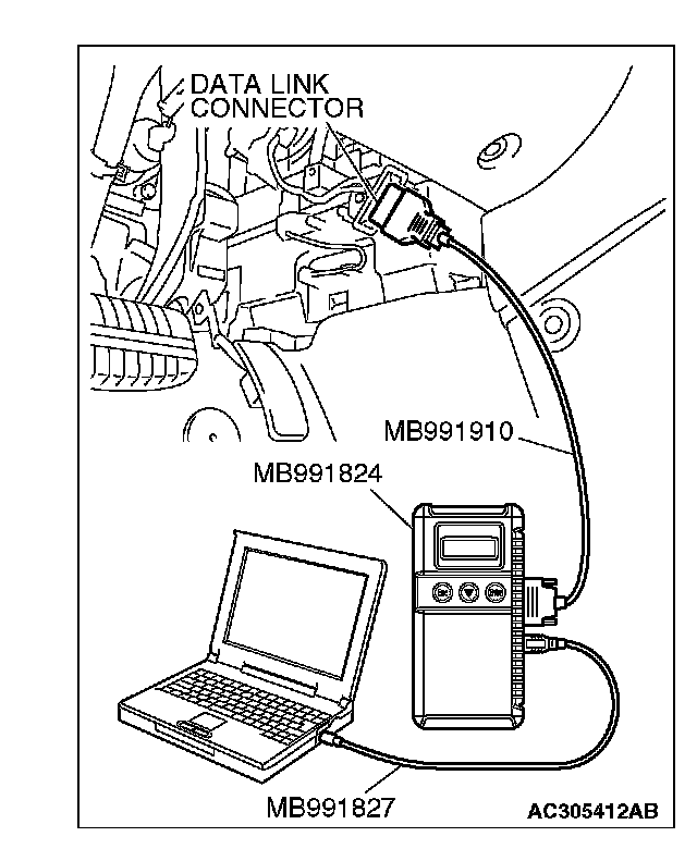 1. Connect scan tool MB991958 to the data link connector.