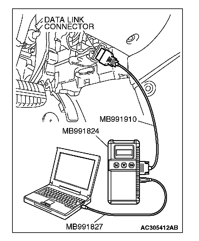 (1) Connect scan tool MB991958 to the data link connector.