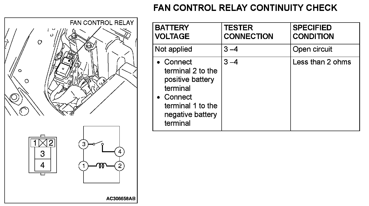 Fan Control Relay Continuity Check: