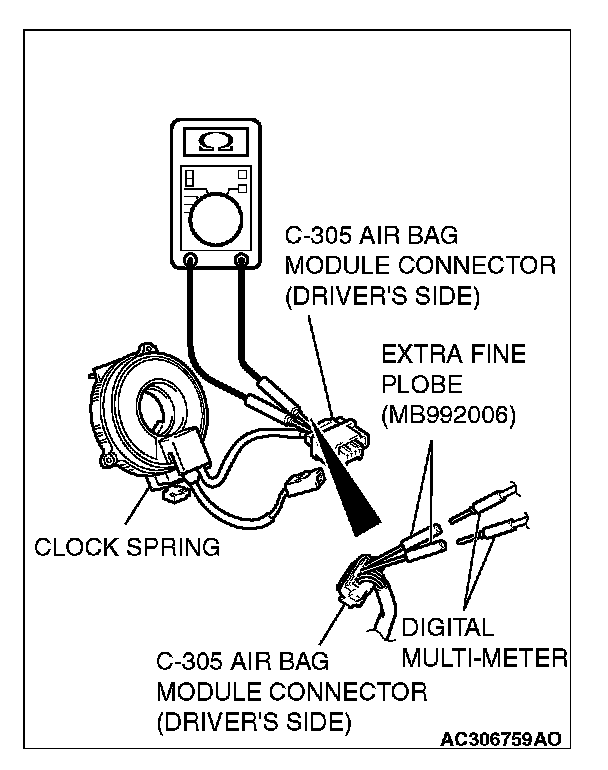 4. Insert the special tool (MB992006) from behind the airbag module connector of the C-305 driver's side.