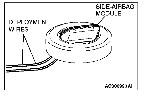 CAUTION: Once disconnected, both electrodes of the side-airbag module connector short automatically to prevent accidental deployment caused by static etc. Still, in consideration of the accidental deployment, store the side-airbag module on flat place with deployment surface facing up. Also, do not put anything on it.