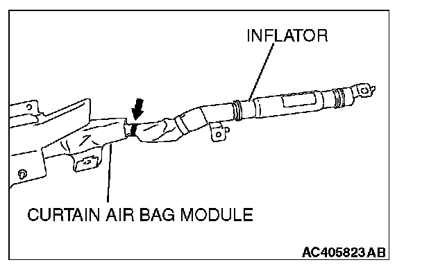 NOTE: If the curtain air bag module connector is disconnected from the floor wiring harness, both electrodes of the curtain air bag module connector will be automatically shorted to prevent unintended operation of the curtain air bag module due to static electricity, etc.