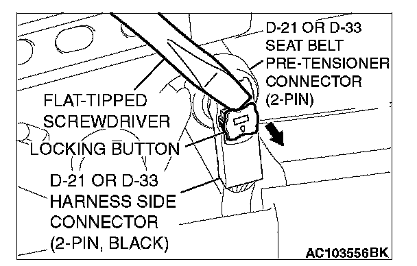 3. Use a flat-tipped screwdriver to unlock the harness side connector locking button by withdrawing it toward you in two stages.