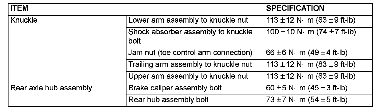 FASTENER TIGHTENING SPECIFICATIONS