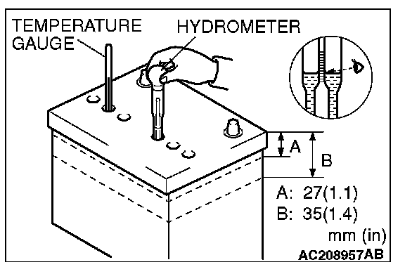 2. Use a hydrometer and temperature gauge to check the specific gravity of the electrolyte.