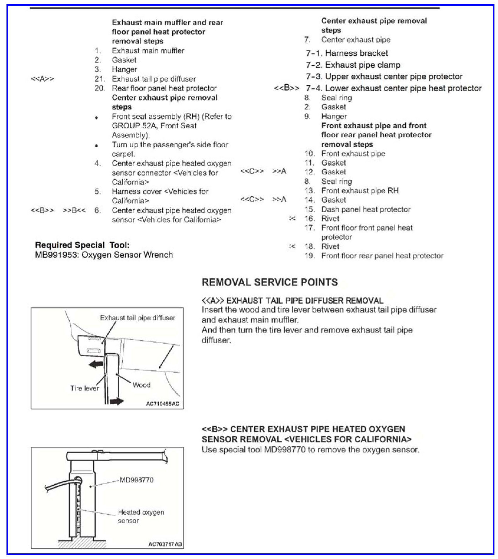 EXHAUST PIPE SERVICE PROCEDURES - SERVICE MANUAL REVISION