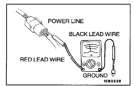 A voltmeter is used to measure the circuit voltage. Normally, the positive (red lead) probe is applied to the point of voltage measurement and the negative (black lead) probe to the body ground.