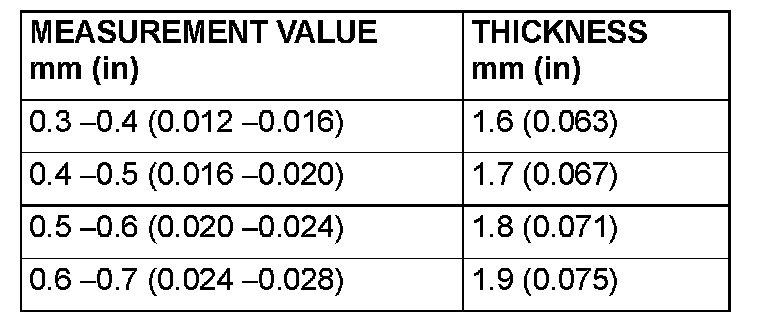 Standard value (Reference): 0.25 - 0.45 mm (0.0098 - 0.0177 inch)