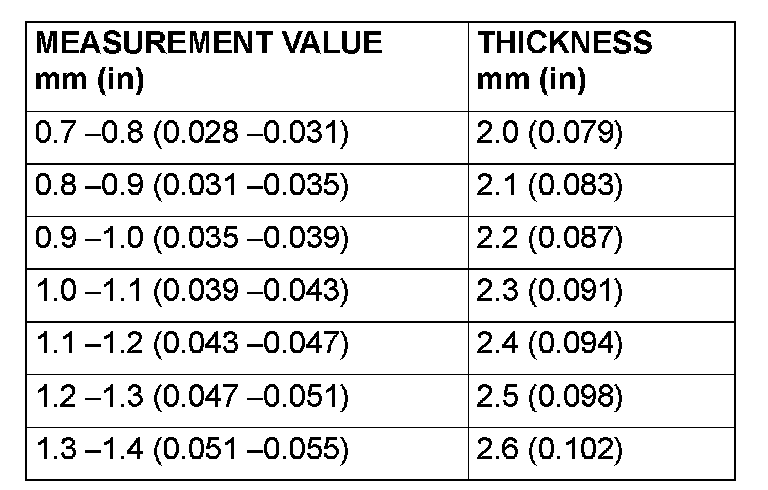 Standard value: 0.70 - 1.45 mm (0.028 - 0.057 inch)