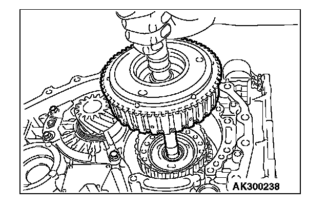 57. Hold the input shaft, and install the underdrive clutch.