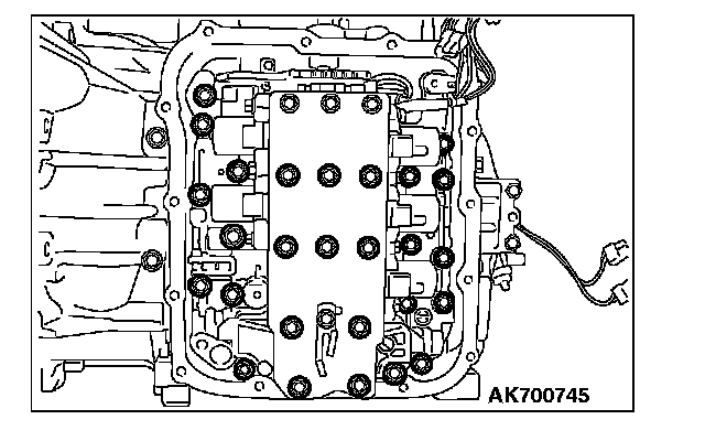 83. Install the valve body mounting bolts (twenty seven pieces), and tighten to the specified torque.