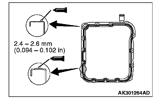 70. Apply a 1.6 mm (0.06 inch) diameter bead of sealant (Mitsubishi Genuine Part number MD974421 or equivalent) to the torque converter housing in the area shown.