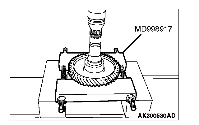 1. Support the transfer driven gear with general service tool or special tool MD998917, and then set them on the press.