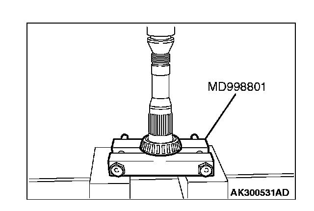 1. Support the taper roller bearing with the special tool MD998801, and then set them on the press.