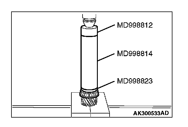 2. Using special tools MD998823, MD998812 and MD998814, press in the taper roller bearing.