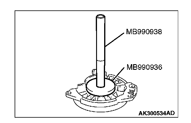 Use the special tools MB990936 and MB990938 to tap the outer race in the bearing retainer.