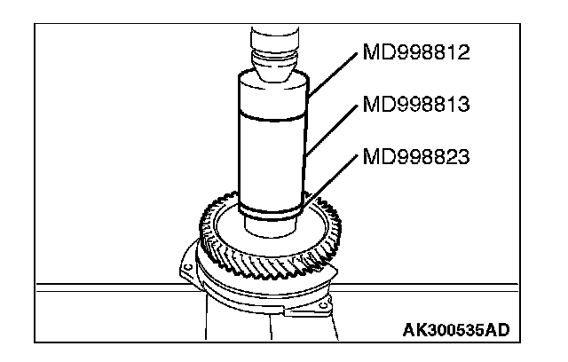 2. Using special tools MD998823, MD998812 and MD998813, press in the transfer driven gear.