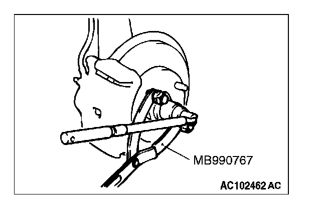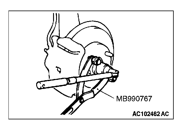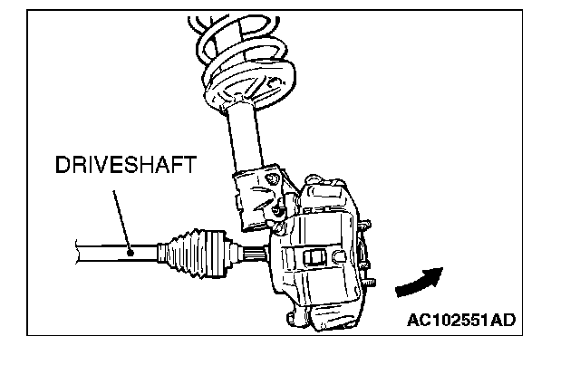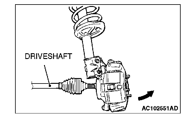 CAUTION: Do not apply pressure to the wheel bearing by the vehicle weight to avoid possible damage when the drive shaft is removed. If, however, vehicle weight must be applied to the bearing to move the vehicle, temporarily secure the wheel bearing by using special tools MB991000 and MB990998.