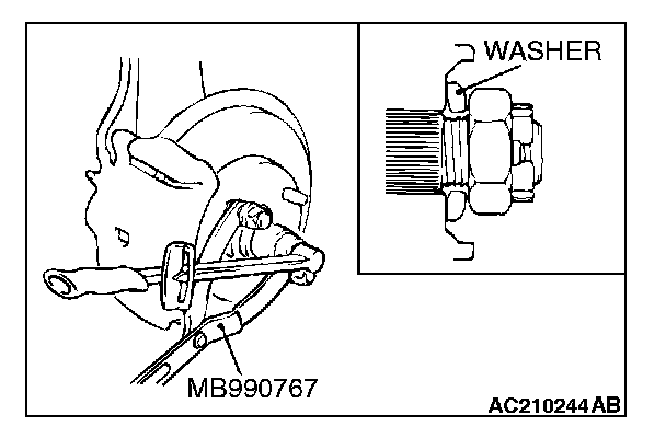 2. Using special tool MB990767, tighten the drive shaft nut to the specified torque.