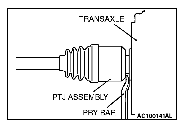^ Do not pull on the drive shaft; doing so will damage the PTJ; be sure to use the pry bar.