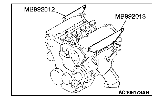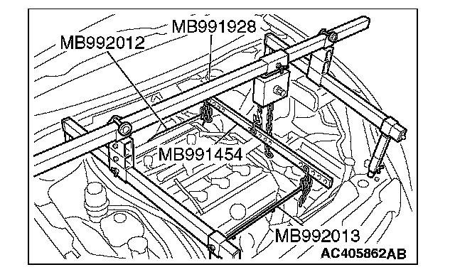 2. After removing the intake manifold plenum stay (rear) and the engine hanger, set special tool MB992012 and MB992013 to each cylinder head.
