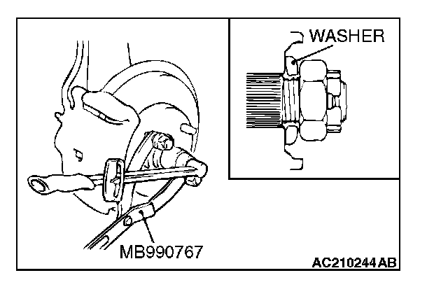 Use special tool MB990767 to fix the hub and remove the drive shaft nut.