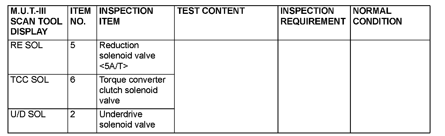 Actuator Test Reference Table