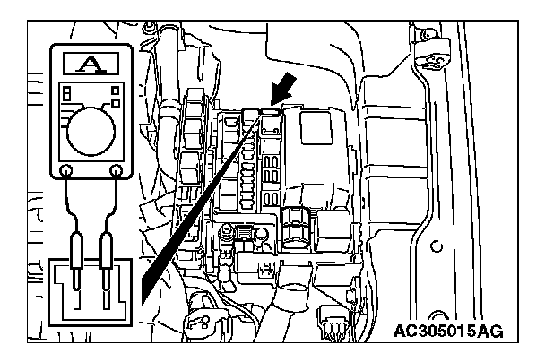 POWER WINDOW OPERATING CURRENT CHECK1. Remove the power window fuse and connect an ammeter as shown in the illustration.