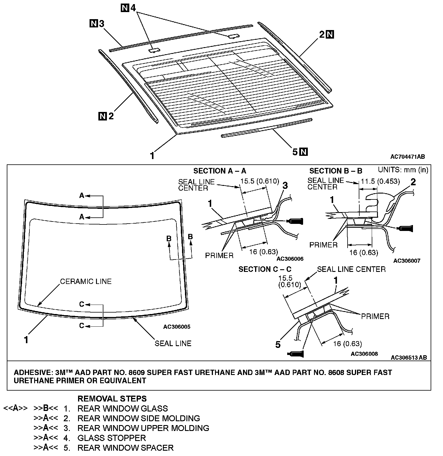 [[A]]REAR WINDOW SPACER/GLASS STOPPER/REAR WINDOW UPPER MOLDING/REAR WINDOW SIDE MOLDING INSTALLATION