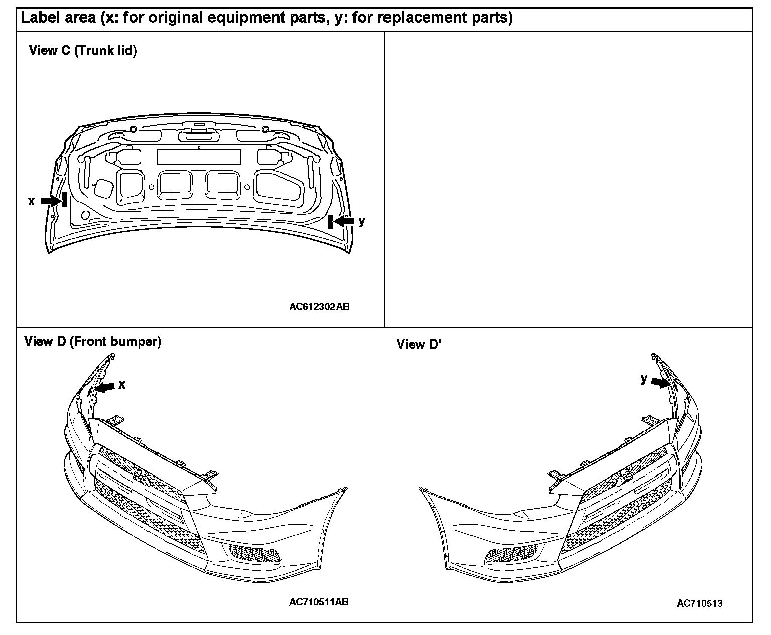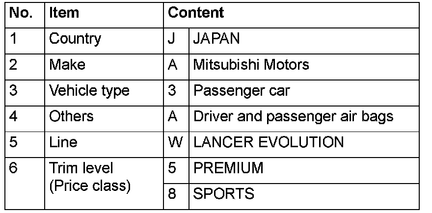 In order to protect against theft, a Vehicle Identification Number (VIN) is attached as a plate or label to the following major parts of the engine, transaxle and main outer panels: Engine cylinder block, Transaxle housing, Front fender, Hood, Trunk lid, Bumpers, Side outer panel, Doors. In addition, a theft-protection label is attached to replacement parts for main outer panels. The same data is stamped into replacement parts for the engine and the transaxle.