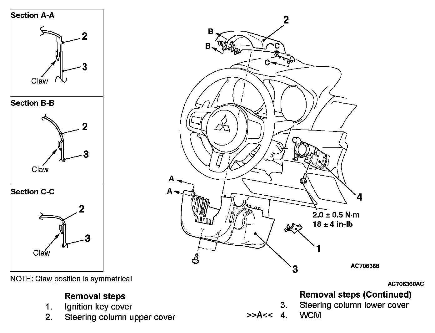 Check that the top claw of WCM is fixed securely to the boss of steering lock and the antenna is not floated on the key cylinder.
