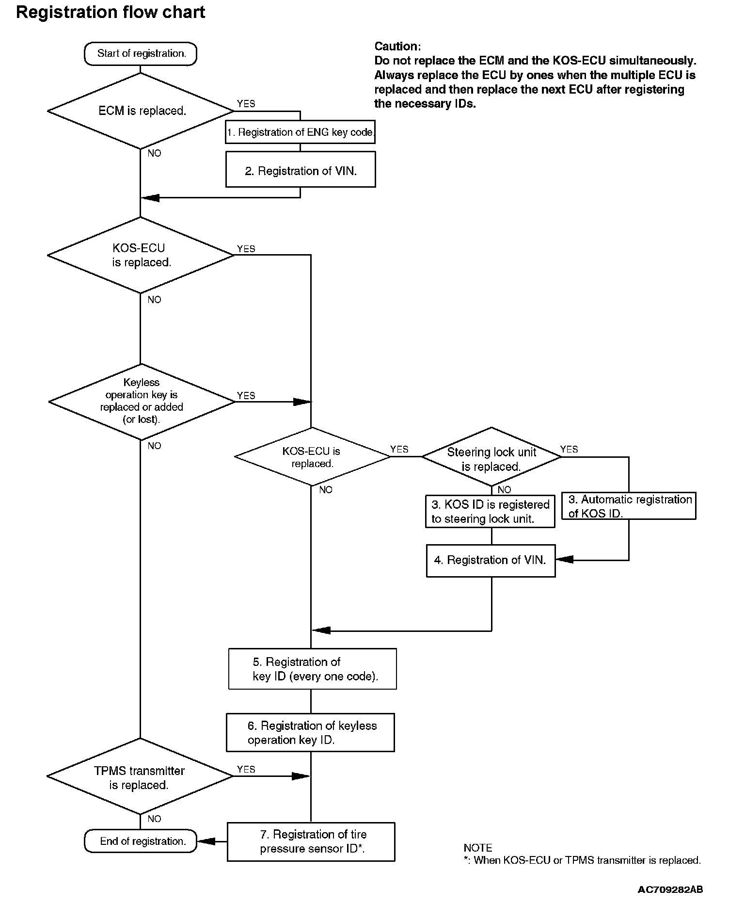 NOTE: The KOS-ECU memory can memorise the maximum 4 different keyless operation keys (keyless operation key ID codes and key IDs).