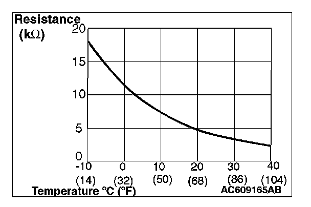When the resistance between the sensor terminals is measured under two or more temperature conditions, the resistance should approximately satisfy the illustrated values.