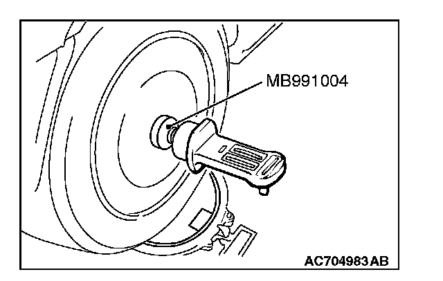 NOTE: Tighten the wheel alignment gauge attachment (special tool: MB991004) to the specified torque, then perform measurement.