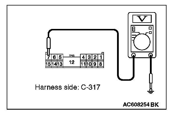 1. Disconnect ETACS-ECU connector C-317 and measure the voltage available at the junction block side of the connector