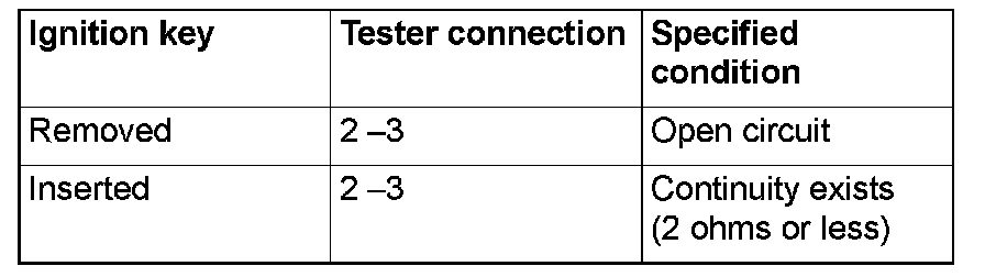 2. Check for continuity between key reminder switch connector C-211 terminal 2 and each of the other terminals as well as terminal 3 and each of the other terminals.
