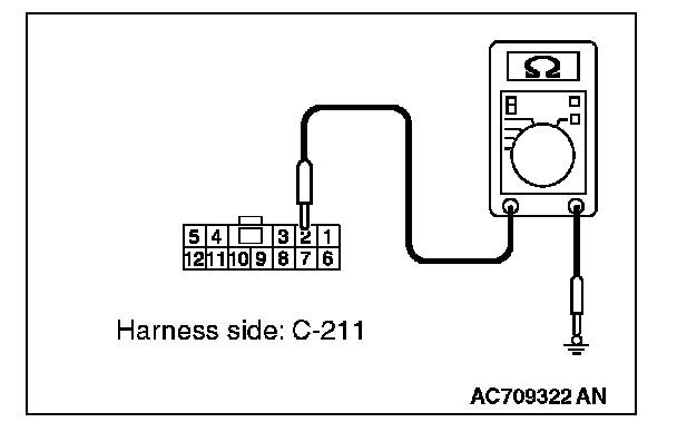 STEP 3. Check the ground circuit to the key reminder switch. Measure the resistance at key reminder switch connector C-211.