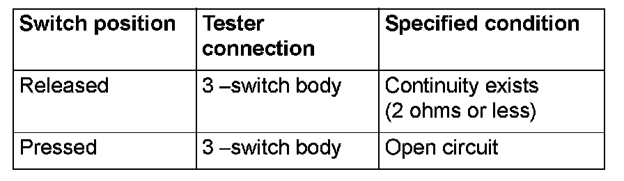 Remove the front door switch (RH). Then check the continuity between the switch terminals and the switch body.