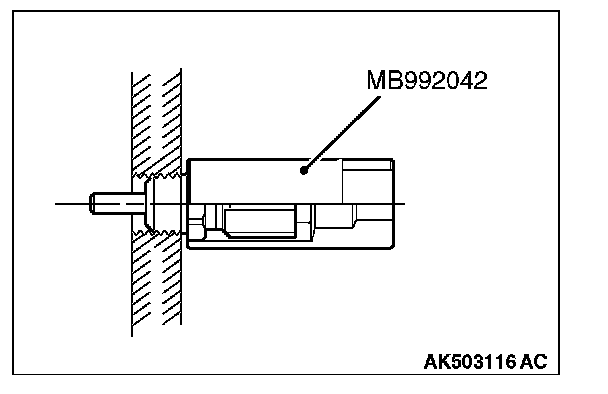 1. Drain engine coolant, then remove the engine coolant temperature sensor using the special tool MB992042 (engine coolant temperature sensor wrench).