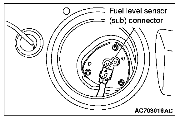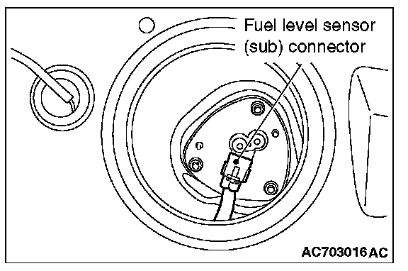 CAUTION: Pay attention not to damage the fuel level sensor (sub) and the float of the fuel level sensor (sub) when withdrawing it from the service hole.