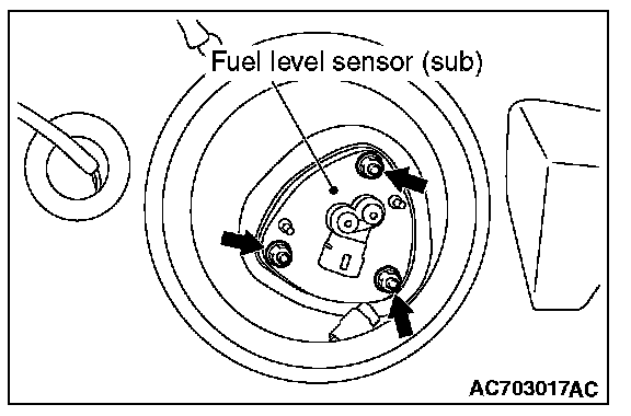 4. Remove the fuel level sensor (sub) mounting nuts, and remove the fuel level sensor (sub) from service hole.