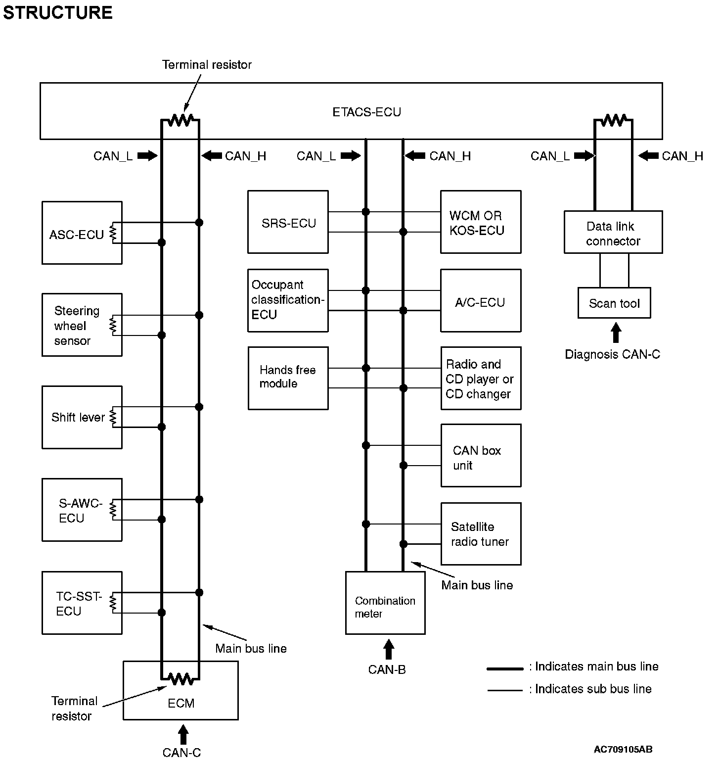 - Non-dominant ECU: ECU and sensor on CAN-C network, excluding ETACS-ECU and engine ECU